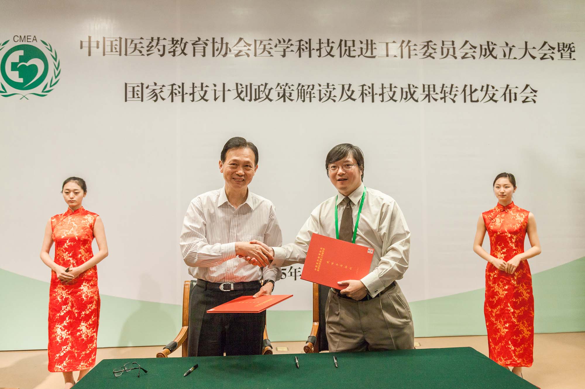 5月23日,中国医药教育协会医学科技促进工作委员会成立大会暨国家科技计划政策解读及科技成果转化发布会在京召开。会议选举产生了医学促进工作委员会的名单,李建华同志当选首届主任委员,王树强同志当选首届常务副主任委员兼秘书长,王凡、杜冠华、奚廷斐等同志当选为副主任委员。在同期举办的国家科技计划政策解读及科技成果转化发布会上,国务院发展研究中心、国家科技部、国家卫生计生委相关领导就国家健康产业发展战略、国家科技政策和当前热点问题做了报告和解读。医学科技促进工作委员会与博雅干细胞集团等七家企业举行战略合作签约仪式,共同发展生物医药战略性新兴产业。